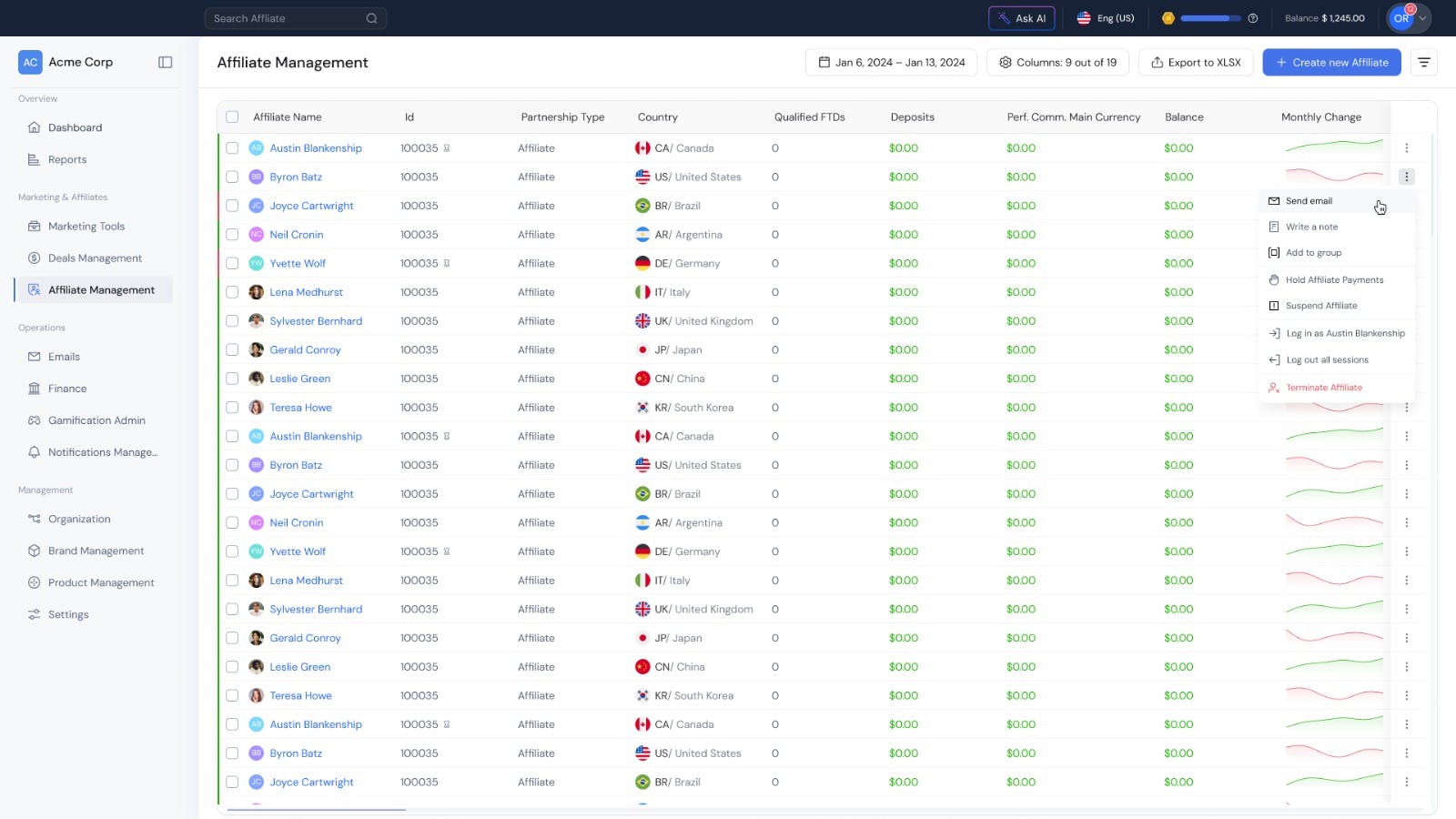 By connecting Affiliate & IB performance data directly into Skale CRM, management teams gain a 360° view of campaigns, leads, and revenues. CEOs, COOs, and Heads of Marketing can make faster, data-driven decisions without relying on manual reports.